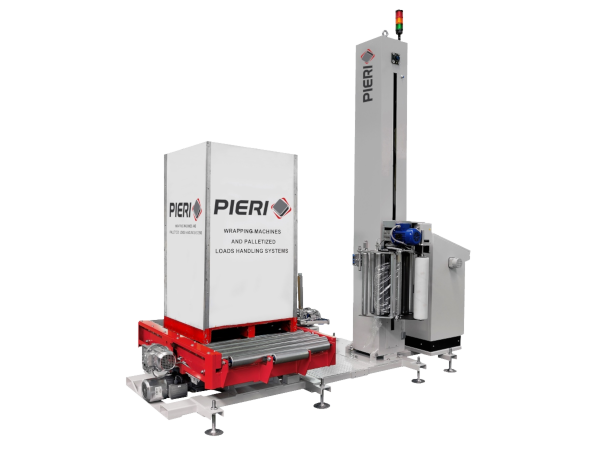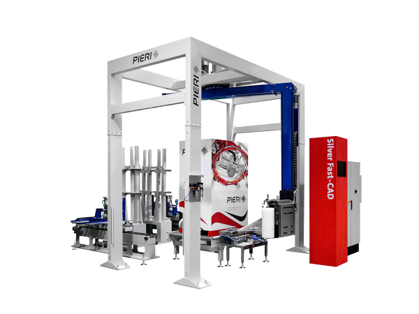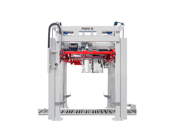 Zintegrowany układ składa się z ośmiu uchwytów na narożniki kartonowe (po dwa na każdą krawędź ładunku), magazynków mieszczących do 40 narożników o grubości 2,5 mm oraz urządzenia typu pick & place z aplikatorem podciśnieniowym. System automatycznie pobiera narożniki z magazynków, umieszcza je na krawędziach palety i mocuje do ładunku jeszcze przed rozpoczęciem cyklu owijania. Cały proces odbywa się równocześnie, bez potrzeby ingerencji operatora.